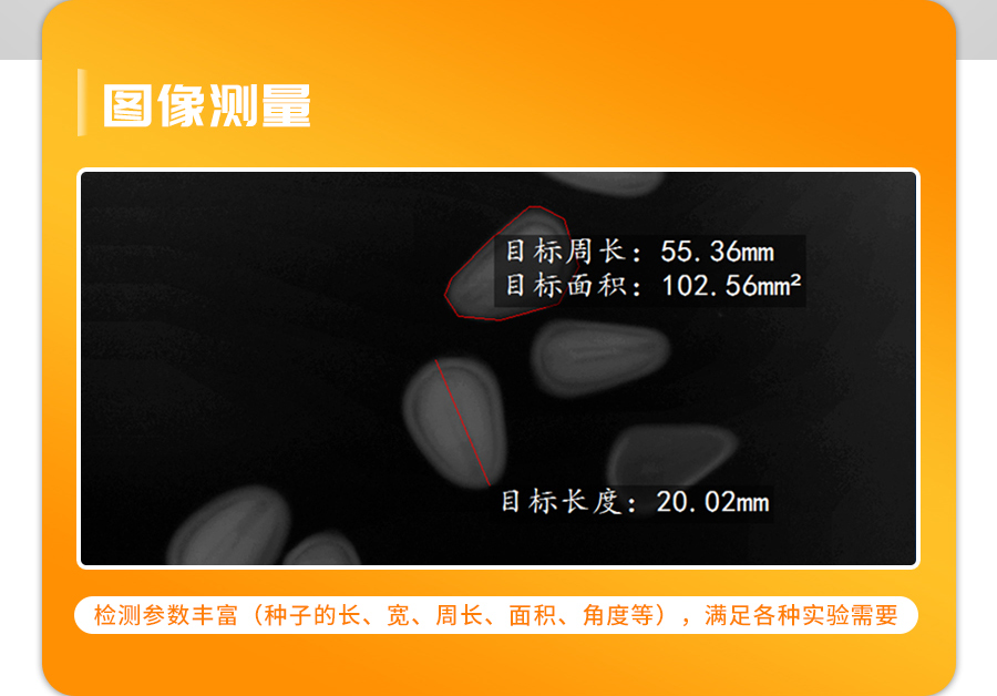 3、檢測參數(shù)豐富:軟件可測種子的長、寬、周長、面積和角度等,滿足各種實驗需要。